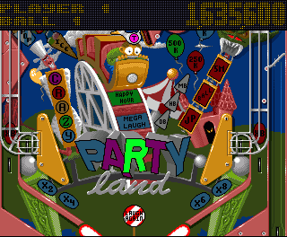 The SNES port is once again handled by GameTek. The music once again made it over with few problems (though it tends to play a little fast in some emulators for some reason), but the tables have become less colorful (as it's actually based on the original ECS Amiga release) and chunkier in places to better fit the SNES's comparatively smaller screen and cartridge size. Stones & Bones particularly suffers from this, as well as most of the artwork in Party Land. Billion Dollar Game Show looks okay for the most part. Speed Devils was probably the best done, but it still doesn't look that great. It's a little disappointing, the quality of this port compared to that of Pinball Dreams...