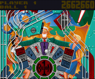 They ain't kidding when they say billion dollar. There is actually a bonus in this table that will give you one billion points (yes, that's billion, with a B). Thing is, though, it's very hard to set up: you have to get most of the other bonuses on the table in a single ball! Even without this bonus, Billion Dollar is probably the most generous scoring table of this bunch, making it a breeze to get points on the ten millions and above in a single ball. This is especially true if you're good at hitting the topmost ramp: a few times in quick succession will make for easy millions, and even if you fail to hit the ramp, the ball will usually head straight for the upper flipper, giving you a chance to hit the Skill ramp.