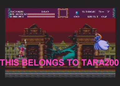 A few years ago, there was a rather bizarre auction for a "Castlevania Bloodlines" beta cartridge. There were several pictures featured, but the auctioneer wouldn't give off much information about it. The reserve was set impossibly high and apparently no one actually won the cartridge, but s/he refused to have it dumped for emulation or tell anything else about it. Thanks to Anapan, Setzer the Gambler and Ed Oscuro, who posted these old pictures on the forums. Note some of the small differences - the Hellhound in the middle of the first level looks completely different, and there appears to be a part of the fourth level that had a blimp - something not in the final game. Also take a look at these Electronic Gaming Monthly Scans (Page 1 and Page 2) for similar pictures. If you have any more screenshots or have anymore information, please, submit it!