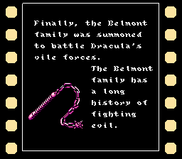 Finally, the Belmont family was summoned to battle Dracula's vile forces. The Belmont family has a long histroy of fighting evil.