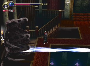 and also get your Vampire Killer whip. And if the screenshots look dark and uninteresting - well, that's because this whole area is dark and uninteresting. For being the last level, you'd barely know it by its design, although there are a lot of rather difficult enemies. After refighting the Doppelganger on the first floor, you're allowed onto the second flight, where you must retrieve the VI stone, flip it into the IV stone with the proper mechanism, and retrive the crest that opens the door to the final battle.