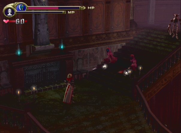 This is probably my favorite level, if only because the rooms that repeat here at least look different than the rooms that repeat in all the other levels. Its wood and carpet design is also a nice change a pace. You'll encounter a few rooms with the classic bone pillars, who won't breath lasers if you're facing them, leading to some barely-puzzles (remember that Leon can sidestep when he's blocking.) The major task is to find the bell and use it the theatre to awaken the Succubus.