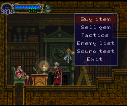 Ghoulish skeletons and possessed books try to attack Alucard in this strange house of knowledge. Keep up your search and you'll find the Master Librarian who's willing to help, as long as he can be paid. Once the Double Jump stone has been found Alucard can explore more, and even find the bat form (although you need the mist to get through the grate.)