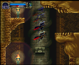 The outer bridges of the Clock Tower will crumble if Alucard sets foot on them, so watch out. The inner workings of the tower are full of gears and Medusa heads make the jumps tricky. Further into the lair watch out for knights whose spirits will attack once their mortal body dies and jump across swinging pendulums. The raven king Kuramusan guards the door to the Castle Keep.