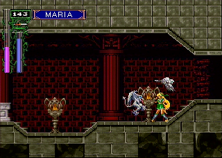 In the greenhouse, you'll just faced an assortment of Flying Swords, Venus Weeds and knights. At the end of the hallway is one of the exclusive weapons to the Saturn version,