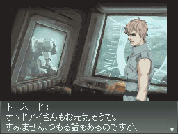 The main protagonist, Tornado is an OCU soldier who works for the Chariots mercenary group. He was sent to Huffman Island to assist the Chariots in border patrol duty. Along with mercenaries Champ and Oddeye, Tornado trains new wanzer pilots on Huffman Island.
