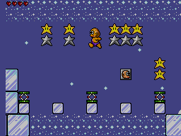 This platformer starring a little bald caveman mixes the traditions of Zemina's Super Boy with the theme of Wonsiin. The gameplay is still very Mario-inspired, but other than a few minor sprites like the stars and the weeds, that look like ripped straight from Mario games, everything in this game is completely original content. Makes one really wonder why they compromised their effort with such tiny things.