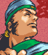 The main character, more or less. He wears a bandanda like the hero of the first Suikoden game, and has a dragon tattoo on his back. Wields a sword.
