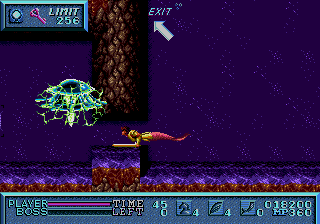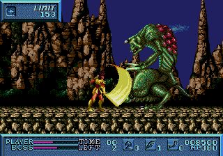 The graphics are about average for an early Genesis title. Macress’s large, realistically-proportioned sprite is reminiscent of Altered Beast, another game with a transformation gimmick, and some of the bosses and larger monsters look pretty cool, but the environments are often a little grainy. The skies look great, and the outdoor levels are generally nice, but you’ll spend far more time exploring caves and castles. There, the color schemes tend towards muddy browns and grays, though they do benefit from the more sinister atmosphere in the second loop. The soundtrack is similarly unexceptional for the most part. The intro and ending themes are quite nice, as are maybe two of the level themes, while the rest is just there. Though the game doesn’t say, some sources credit composer Toshiko Tasaki, who went on to work on a number of Shin Megami Tensei spin-offs.