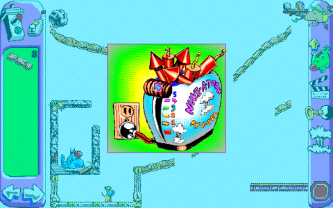 The problem is that while the original TIM made some kind of sense if you didn’t think about it too hard, about everything in Incredible Toons runs more or less on cartoon logic. This makes everything just a little more unintuitive, especially when you forget one particular interaction that can happen between two parts. It certainly lacks the general feeling of how a Rube Goldberg machine actually worked. Try comparing the way a puzzle was described in the previous game to another puzzle you’d encounter in this game.