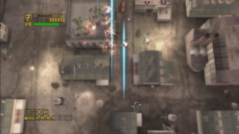 Despite being named 1942 and positioned as something of a remake, its systems are actually taken piecemeal from various games throughout the series. The three ships from 19XX have returned. You have a life bar in addition to several lives, as well as a charge attack, which shoots a powerful burst forward like 1941. In addition to the usual power-ups, you can pull off the standard loop-de-loops, which also act as bombs to destroy everything on the screen. You also have a secondary weapon, a pair of homing missiles which act exactly the same way as the charge shot in 1941, though here they are in limited supply. However, killing groups of enemies quickly will replenish the gauge (seemingly through magic, as there are no icons to pick up), so even though they aren’t that powerful and you can only hold eight at a time, you’ll usually have a constant influx to use. There’s also a scoring system where you get multiplies based on how close you are to an enemy when you kill them. The Joint Strike of the title refers to a manuever that can only be pulled off in co-op play, which the game supports over Xbox Live, as well as local play.