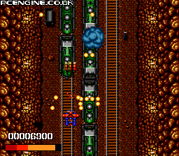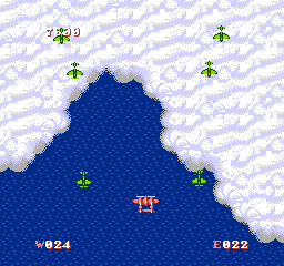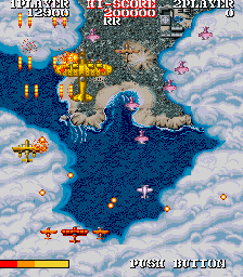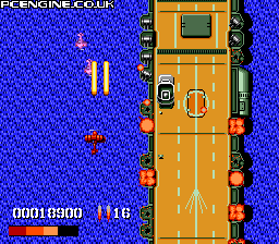 The game begins with the enemy bombing your carrier. You manage to take off before it sinks and fly off to exact vengeance, with the ultimate goal being the destruction of the Japanese battleship Yamato. There are now sixteen levels in total, with the second half of each level comprising of a boss battle. For most of the stages, you fly lower to the ground and fight against a fleet of battleships. If you fail to take out the leader of the fleet, you must replay the segment, although if you fail twice, you’re given a pass to the next stage. In a few of the stages, you fight against a gigantic airplane instead.