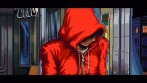 The team really did their homework when doing the sprite art. This is some fantastic spritework, even above Owlboy, every moment feeling like something that would be pouring out from the most high end of machines. All the games look authentic, but the cutscenes steal the show with the breathtaking detail and color use. While the animations are lacking, they all do exactly what they need to do, every scene looking like a moving painting crafted with endless pits of love and care. Every screen just feels like a real place, helped by some brilliant use of rain effects and empty space.