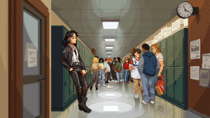 The problem is the script itself. Said script is made up almost entirely of the kid’s inner monologue, so we’re never given a break from his perspective. This is an issue because the kid is supposed to be a sort of everyman, someone you can easily relate to, and there’s certainly a lot there to work with (particularly with personal loss and escapism). However, he never really talks like person, but more like a collection of clichés. He constantly complains about high school hierarchies, something only adults complain about in hindsight. Even some of his talk about arcades is a tad ridiculous, comparing them to other worlds he constant dreams about. That’s overselling the mystique a bit.