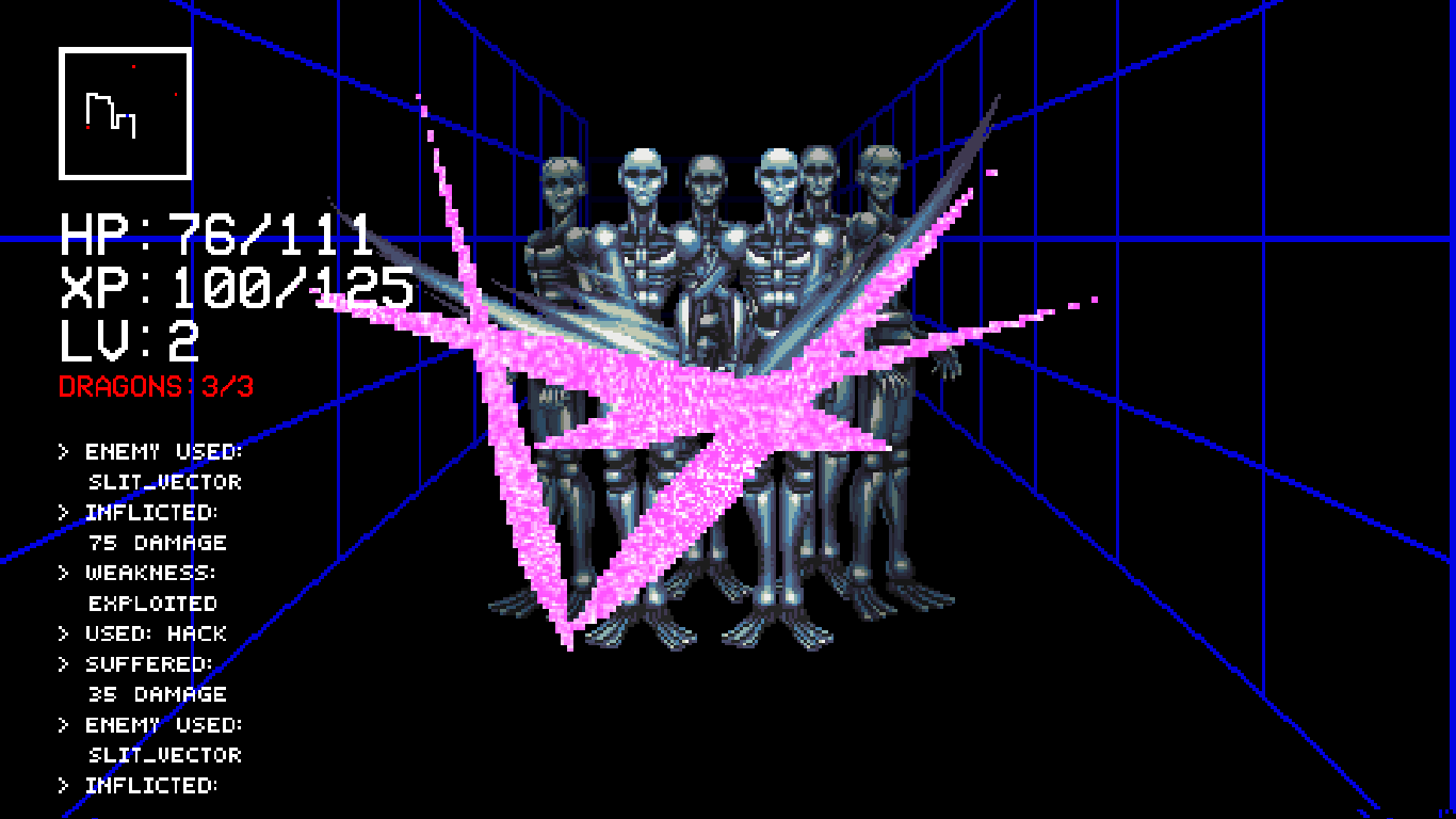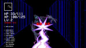 None of them are quite as good as the games they’re inspired by, but they do a good job of emulating the feel of them. Beating Heart, the beat-em-up game, will give anyone who played Final Fight flashbacks, especially when you reach the big guys, and it even ends on a possible Double Dragon reference. Out of the Void, the shoot-em-up, does not stray in the slightest from its clear Gradius inspiration. The Runaway, the driving game, manages to include some familiar graphical effects to Outrun, and its general look is reminiscent of Pole Position. The last two odd ducks, Shadowplay and Kill Screen, take aesthetically from popular themes, like ninja games or cyber worlds, the one really out there inclusion being what basically amounts to the appearance of SHODAN from System Shock at the end of Kill Screen (though there’s a clear purpose for it).