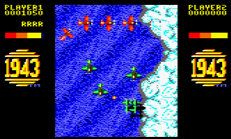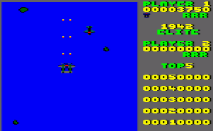 There are two ports for the Commodore 64. The first, released in 1987 by Swedish company Action Software, is technically called '43: One Year After, as noted on the box cover and title screen. It was not made by Capcom or even licensed for that matter. It plays closer to 1942 and looks surprisingly decent for a rip off. Unfortunately, it also plays terribly, with two huge bars on the side of the screen, with the left side showing a map tracking your progress. A proper port was developed by Tiertex and released the next year, and while it's better than One Year After, is still mired by plenty of issues, most notably the slow speed of your plane.