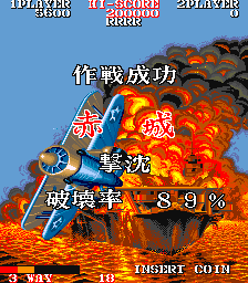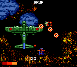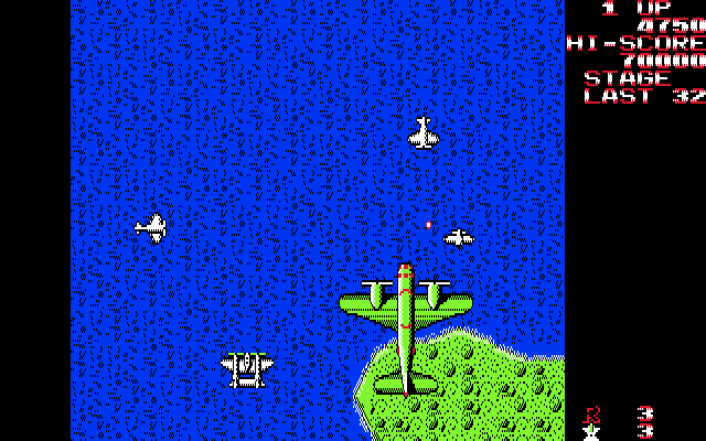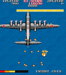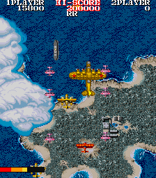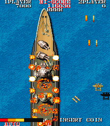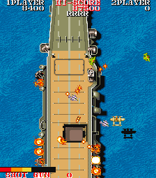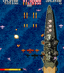 The game begins with the enemy bombing your carrier. You manage to take off before it sinks and take to the skies to exact vengeance, with the ultimate goal being the destruction of the Japanese battleship Yamato. There are now sixteen levels in total, with the second half of each level comprising of a boss battle. For most of the stages, you fly lower to the ground and fight against a fleet of battleships. If you fail to take out the leader of the fleet, you must replay the segment, although if you fail twice, you're given a pass to the next stage. In a few of the stages, you fight against a gigantic airplane instead.