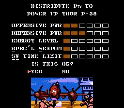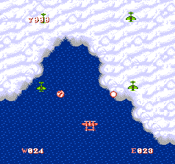 Like its predecessor, 1943 was ported to many systems. The most unique is the NES version, which adds in a feature where you can customize your plane's statistics - at the beginning, you can allocate a certain number points to your offense, defense, energy (the size of your health bar), special weapon (which determines which weapons pop up when you shoot power-ups) and special weapon time limit (how long a special weapon lasts). You can find hidden items throughout the game which can be used to strengthen any of these after each level. There are 24 stages in total this time, as opposed to 16 in the arcade version. The port was also handled by Capcom rather than Micronics, so it's a big step above the original's NES port. Interestingly, the Famicom version is subtitled The Battle of Valhalla rather than The Battle of Midway, turning it from a real campaign to a fictional one.