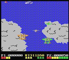 The ZX Spectrum version is terrible. Everything is either white or light blue, putting a huge strain on the eyes, a huge downgrade from the surprisingly good port of 1942. The Amstrad CPC version once again has a really cramped screen with too much space devoted to showing player 1 and 2's scores. While the graphics look pretty decent for a CPC game, and it runs more sprites on screen than one would be used to seeing on a CPC, the cramped screen screws it up. It's still playable, just frustrating.