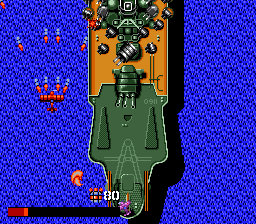 Perhaps more importantly, this version includes five brand new stages. The first part of the game is practically identical to the arcade version, but after those are completed, the "Original" mode kicks in. This is practically a whole new game, as you control a different, more powerful fighter. These stages are much more visually diverse than the endless ocean levels of the arcade game, complete with new enemies and bosses. They're also much more difficult and involving, to the point where this version is definitely preferable over the original version. (A cheat code lets you skip to the new levels, if you're so inclined.)