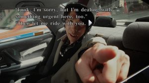 A few times during each story, you’ll come across a “Keep Out”, booting you out of that particular thread. Theses usually involve the characters crossing in some way, so you need to play another’s story until you find their names highlighted, allowing you “Jump” back to it, open up the “Keep Out” and continue with the story. It seems contrived at first, but it does allow the story to keep some dramatic tension, since what happens in one story could spoil the others (and still does, on a few occasions).