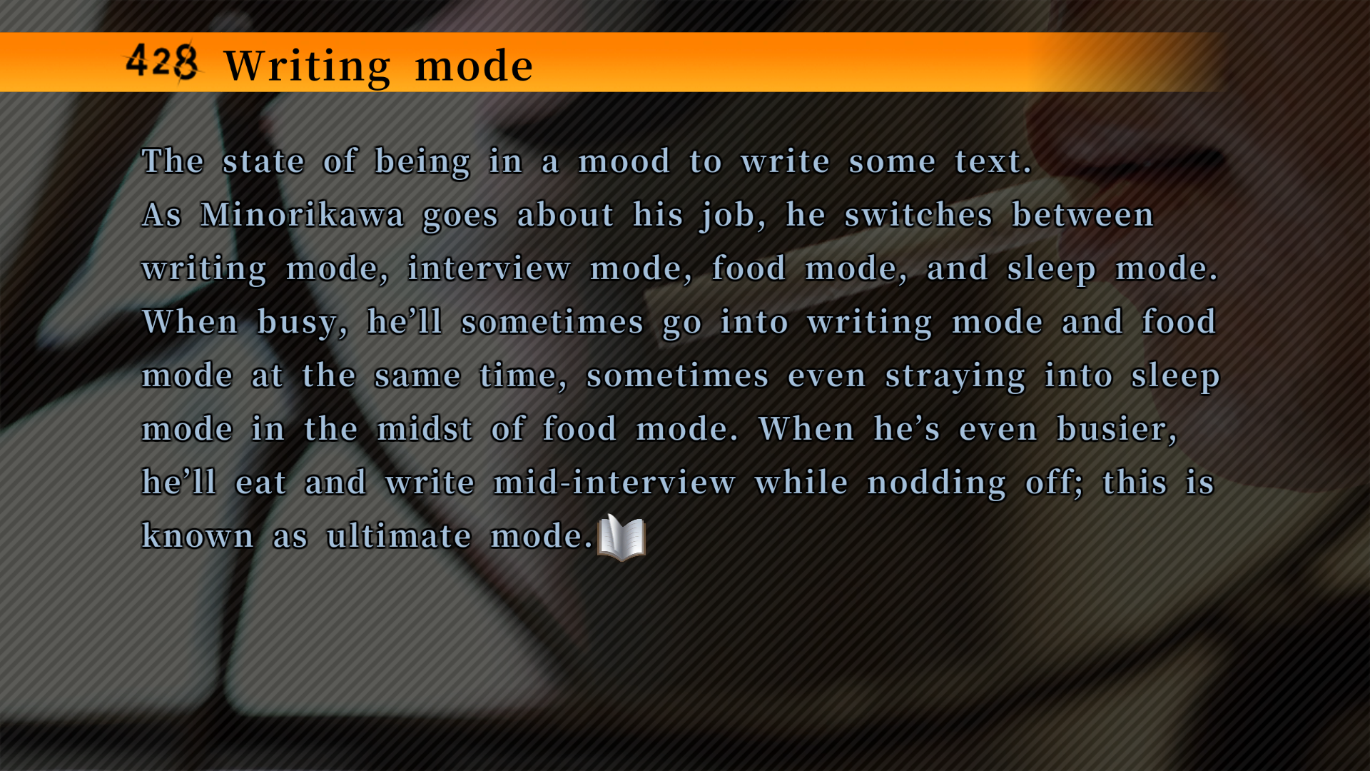 An abrasive (but talented) freelance writer who volunteers to help an old friend by saving his publishing company. He does this by running around Shibuya to interview as many people as possible to help fill the pages of a magazine before its deadline. This, of course, eventually leads him to cross with the main story. He loves to yell and point dramatically.