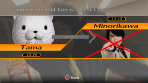 The bad endings shouldn’t be regarded as failures on the part of the player – there’s simply no way to avoid many of these without clairvoyant powers (or using a FAQ). Instead, they show how drastically someone’s life can be affected by others, even things that seem inconsequential. Since time is of the essence for many characters, something that causes them to be even temporarily delayed can have catastrophic consequences. Indeed, the constant failures you’re forced to witness really just makes you root for the heroes even more. So you can view yourself, the player, as sort of a god, trying to find order in the chaos that is everyday life in order to save not only their lives, but everyone in Shibuya as well. The storylines finalize at the end of every hour, so once you’ve cleared it, you don’t have to worry about any previous choices affecting later outcomes. For example, a decision at 10:15 will not have affect beyond 11:00. This also prevents the story from having too many far reaching ripple effects, thankfully.