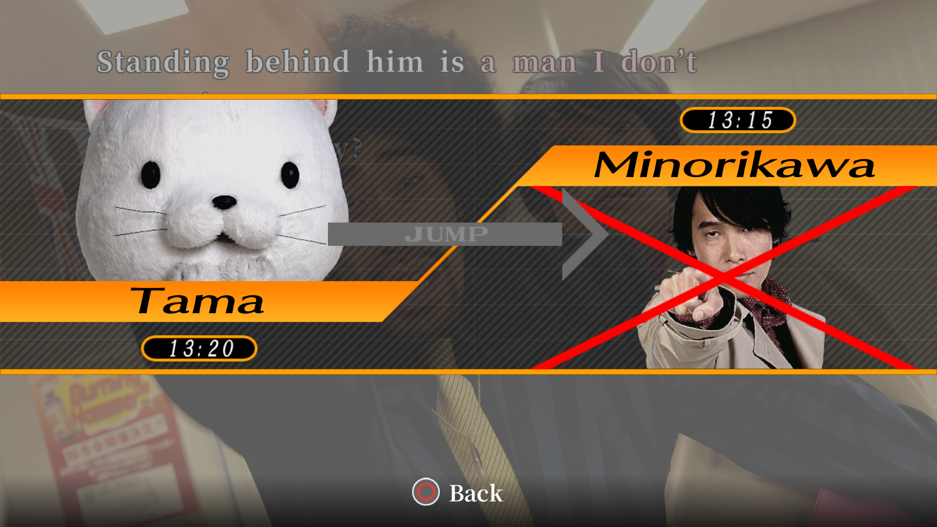 The story takes place across ten hours in a single day of Shibuya, with most chapters broken down by the hour, and even event further split down into increments as small as five minutes. In that way, it’s sort of like the early 2000s American TV show 24. When reading each story, you’re occasionally presented with multiple choice actions. All five characters’ stories run in parallel to each other, and actions in one can affect the other. And here is the game’s main gimmick – in any given character’s story, they’re predestined towards a “Bad End”, which can range from failing their objectives, or, more often, flat out getting killed. In order to stop this, you need to switch to another character and have them make a specific decision so the other can continue unabated. You can hop straight into any event you’ve already seen, so there’s very little time spent re-reading things you’re already familiar with.