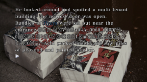 A detective assigned to the kidnapping case, on stakeout in Shibuya. Simultaneously, he’s dealing with a potential meeting with his fiancee’s gruff father. He swears by a code written down in his “Dick Diary”, inspired by a senior detective named Tateno. His partner is a strange man named Sasayama, who changes into increasingly absurd undercover costumes during the story.