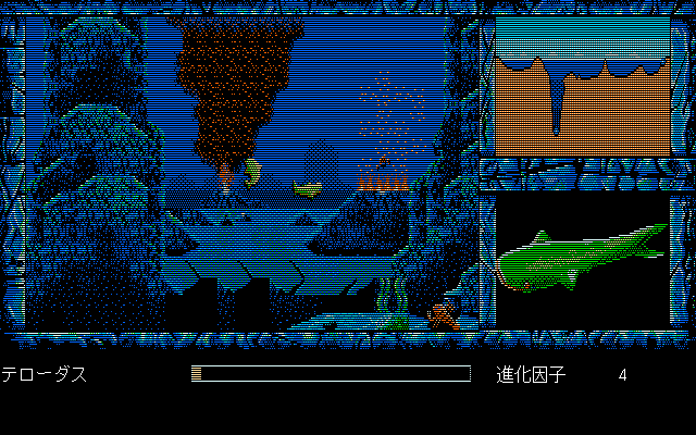 The RPG tripod of Square, Enix and Falcom all started out on old computers. Square produced quite a few RPGs with very unusual battle systems for the PC-8801, like Cruise Chaser Blassty, featuring a customisable first-person mecha, and Genesis, a Mad Max-style RPG. Enix originally focused on adventure games before finding their niche in RPGs. One notable Enix title was 46 Okunen Monogatari, released for the PC-9801 in 1990. This unique evolution-themed RPG was later heavily revised and released for the SNES under the title E.V.O.: Search for Eden.