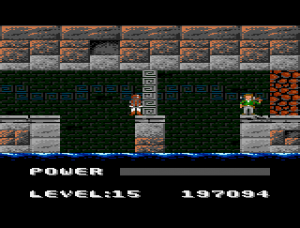 If you’ve played H.E.R.O., you’ll be right at home here. The “A” suit operates very much like the Prop Pack in H.E.R.O., although you now have a rocket pack, which makes taking off much easier. The laser gun in the helmet and the dynamite used to blow up walls (and temporarily light up darkened rooms) also return. Since this is a 7800 game, it has a two-button control scheme as opposed to the 2600’s one-button controller. One button fires the laser, the other lays down dynamite. Simple. Make sure to get as far away from the dynamite as you can before it explodes, though. It’s still lethal. The laser can still burn through walls if you’re out of dynamite as well.