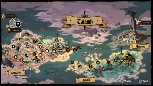 Galandra the elven swordsmaiden hails from the land of Yeldrim, where the cataclysm began. A knight never to be, she seeks to finish her training in what’s left of her ruined homeland. She stands as the “average” of the four characters, a solid all-rounder who excels at nothing in particular. Karl the dwarf is the only one of his kind not turned into an undead fiend, going into the fight with his fist, face, and a mighty blunderbuss. Although his combo capability suffers compared to the others in the cast, he excels at crowd control. Cider the automaton thief is out to find the mystery to their true identity. In combat, they’re the fastest of the four, with huge combo capability and an assortment of tricky but powerful arcanas. Brom the frog seeks revenge on Azra for exterminating his kind, but still seeks out the faint hope of one remaining batch of eggs. He relies more on his magic meter for maximum effectiveness than the other characters, and generally prefers to deal damage from a distance.