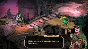 After a magical cataclysm struck the world of Talamh, Azra the Sun King has taken control. His Crimson Order oppresses the populace and hunts down magic-users across the land. Four heroic wizards gather together to try and stop Azra’s dominion, saving both the land and magic itself. Should they fall in battle, the mighty Root Mother will revive them at the start of their journey, ready to set forth again. It’s a fairly gray situation with few real good guys; even the playable characters are clearly looking for revenge rather than heroism.