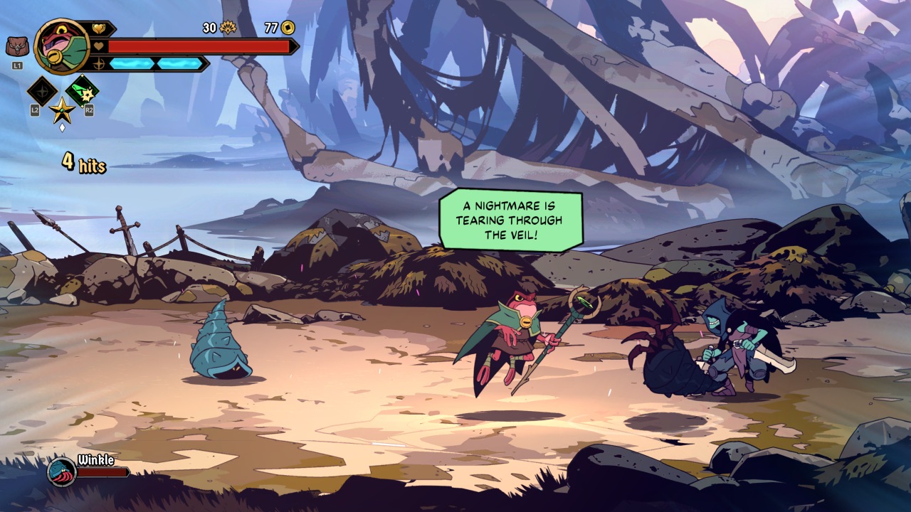 The game’s art style takes most from European comics, with a muted, melancholy palette that fits the grim tone. The backgrounds are especially well-done, with the hand-animated characters all fitting in beautifully. The music, while far different from the developer’s previous games, fits well enough. The soundtrack features a mix of composers, with Ori and the Blind Forest’s composer Gareth Corker handling the majority. The highlight may well be Mick Gordon’s surprising appearance with the Underking boss fight, mixing his traditionally grungy guitars with sampled horn snippets straight from an old fantasy movie.