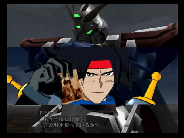 Speaking of presentation, the style and series interaction is much improved over the first game. Whereas characters never appeared in cutscenes in ACE, here they're rendered with nice looking, if somewhat bright, cel shading. One of my favorite parts of playing Super Robot Wars games is seeing how G Gundam gets introduced into the plot, which usually happens in one of two ways: either the Devil Gundam pops up in the middle of a battle with Domon chasing after it, or Domon interrupts a fight and starts asking everyone if they've seen his brother. The latter case is what happens in ACE2, where Domon casually destroys an enemy long range cannon used to bombard the player during a mission then proceeds with the questioning, followed by him incinerating the poor grunt who tried to attack him with his God Finger attack.