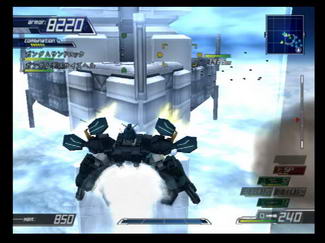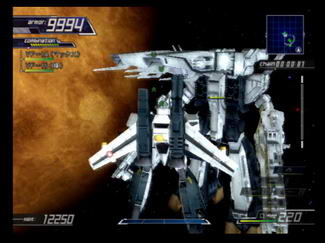 The game engine and graphics have been majorly revamped, with the already pretty mecha models given a new coat of gloss. The control scheme also received a slight modification. Instead of being context-sensitive, melee attacks are now assigned to the sub-weapon button, and holding the L1 button maps up to six weapons/abilities to the buttons on the right side of the controller. Unfortunately, this means that you have to give up half the control of your mech since the boost, altitude control and targeting functions are temporarily overwritten until you let go of the L1 button. It's a pretty big sacrifice, but becomes tolerable with practice. This change also helped to make close-combat units more useful as they were a bit underwhelming in the first game. The alternate control scheme from the first game loses its reliability on target distance in favor of using the L1 button to cycle between your armaments ala ZOE. Although the weapon icons are now smaller, they're color coded so you know which weapon has multi-target capabilities and there's a small progress bar that shows how long it takes before they reload.