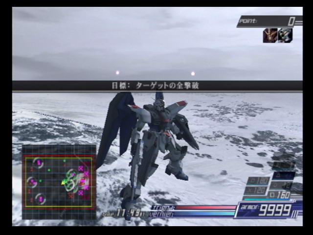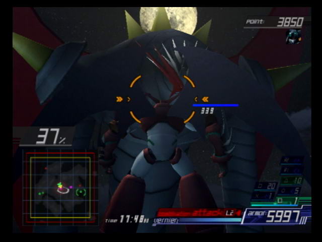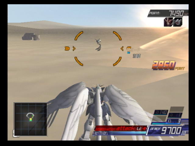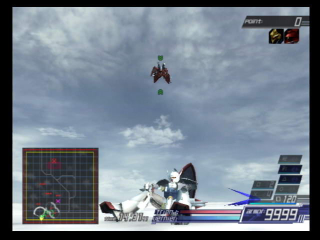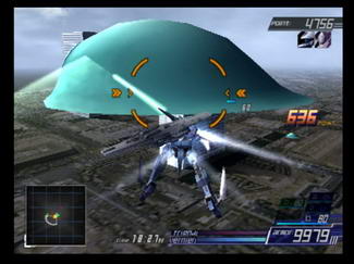 From Software took everything that was good about ACE2's interface and refined it even further. Flight controls for plane forms are no longer extra sensitive and you use the yaw buttons to dodge instead of the left analog stick. Weapon clashes, which occurred too many times during boss fights, are now much less frequent. In ACE2, triple-changer mecha like the valkyries had their transformation cycle locked at either end. So in order to switch between the 1st form to the 3rd you had to go through the 2nd form. Now the transformation cycle loops back to the 1st form after the 3rd and vice versa. Combination attacks are also back with a slight change. Instead of initiating as soon as you hit the button, your mech goes into a nearly unstoppable long range dash towards the target. Once the target has been struck, the attack begins. You can also now tell if a certain squad setup has a special combination by checking for the "Ex" symbol in the deployment screen. Special combinations are no longer restricted to mechs from the same show, so you can try to setup similarly-themed mechs in your squad and see the results. Speaking of squads, your wingmen are now noticeably more effective, regularly killing damaged enemies and using their special attacks to destroy whole groups of them. Any mecha with a physical shield can now move it in front of them to decrease damage from attacks.