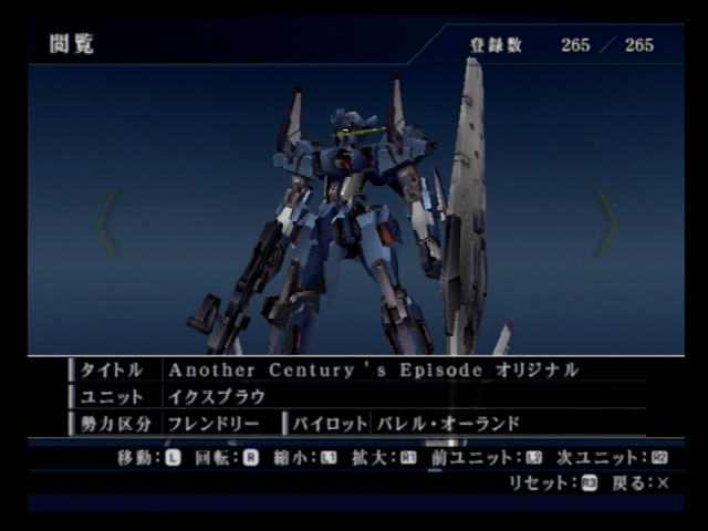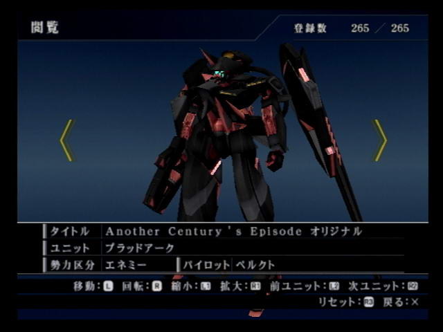 The new original mecha. A general-purpose type with standard armaments as well as missiles and a grappling hook. As the game progresses, several specialized forms become available for it, making it even more broken than the Gun Ark.