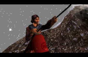 The barren landscape of the snow covered mountains and plain wreckage is visually dominant throughout the game. Using full 3D technology, the extinct WAC WAC! studio designers employed real-time rendering as a replacement for of CGI, quickly changing between low polygon models in the game space and more comprehensive representations during the cutscenes. The level of detail is by all means impressive, bearing in mind the large extension of the open locations, the number of acting characters on screen as well as recurrent effects such as falling snow or burning flames. As far as presentation goes, Aconcagua displays very high production values and refined taste.