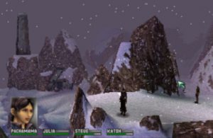 Released in the year 2000, at a time when the PlayStation owners were starting to fantasize about the upcoming 128-bit attraction, Aconcagua fell right into the group of rare and overlooked gems before it had time to prove its worth. In the fictional South American country of Meruza, a woman named Pachamama leads a revolutionary movement that fights against the oppression and cruelty of the installed dictatorship. After a very unique opening sequence, explaining the nation’s political regime and social unrest, follows a brief scene set in the interior of an airplane where the characters are introduced. Unexpectedly, a bomb is detonated, shattering the jet plane into pieces scattered over the frozen mountains of the Andes, in Aconcagua: the highest and most daunting peak of the American continent, also known as the white sentinel.