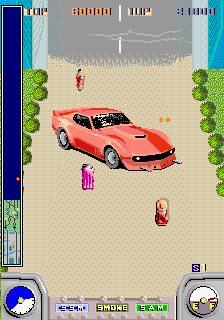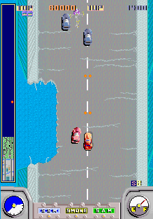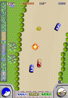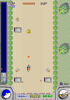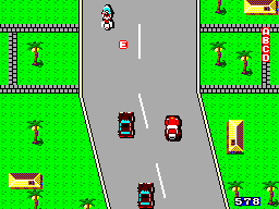 The genre of vehicular combat combines two thrilling virtual pastimes -– racing and shooting –- into one high-octane asphalt killfest. The most renowned "drive while shooting enemies" game of the eighties was Bally-Midway's Spy HunterSpy Hunter, but Sega's Action Fighter served to be a pretty solid entry into the genre, if not a frustrating one.