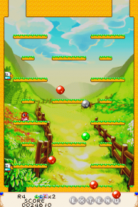 The impressive variety of enemies Riki has to deal with throughout the game certainly doesn’t make staying alive an easy task. Even the most common enemy, flying bees, move across the screen extremely quickly while simultaneously firing projectiles. Combine these with other threats such as skulls that fly in from the bottom of the screen and clouds of bats that fly in sine wave formations and it’s easy to see how death can come quickly. The most frustrating enemy of all is a group of black orbs that surround and close in on Riki; they take so many shots to the point that it’s nearly impossible to avoid damage unless you have the torch ready.