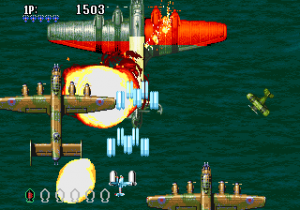 The graphical presentation is almost identical to Aero Fighters 2, though the sound is somehow not as good. The boss theme, is memorable, and not in a good way. It is a very short song and it features vocals, mostly of a man screaming and gargling continuously. While funny at first, it can get annoying after a while, especially because you will be hearing that song loop over and over again. Levels tend to be short and bosses can take a while to defeat, usually longer than it takes to finish the actual level, so that screaming and gargling is going to be playing almost all the time.