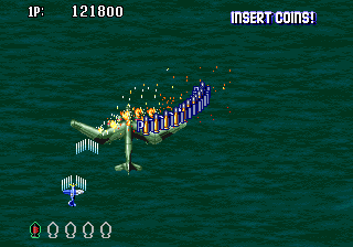 This game supports the Neo-Geo’s region detection system. If played on a US-region system, the title screen reads Aero Fighters 3. If it’s anything else, it instead goes by its Japanese title, Sonic Wings 3.