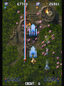Aero Fighters Special feels a lot more contemporary than the previous entries. There are more bullets here than any other entry in the series and some elements of danmaku, though not enough to keep it from feeling old school. Hit box sizes are also reduced, adding to the more modern feel, though grazing does not offer any sort of advantage. Sonic Wings Specialis also the biggest game in the series, with 17 levels. Only nine are played per round, and if a secret fighter is chosen, you get an alternate version of that level. If you count the alternate versions of each level, you get 34 total possible levels to play. All of these levels are remixes of levels from the first three games, Aero Fighters 1, 2, and 3. Which one you play is decided based on your score after level 4.