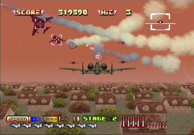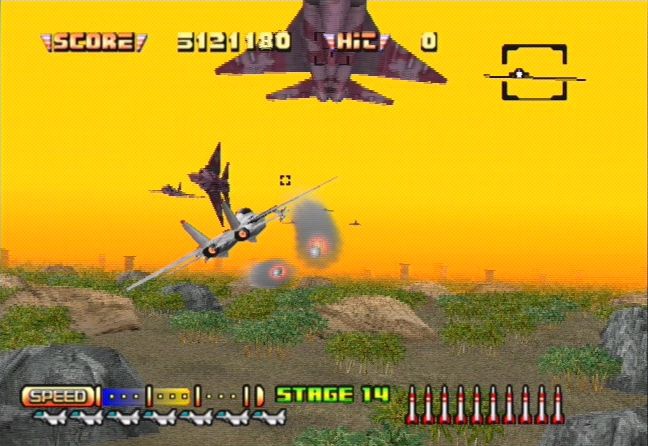 Still, the gameplay has held up almost perfectly, and the sense of speed is still intact, so it’s not a complete waste. Unfortunately, none of the music is arranged, and just uses tracks straight from the arcade. There’s also an “Arrange Mode“ that lets you pilot three other aircraft, including an AV-8B Harrier II, the A-10A Thunderbolt II (a bomber), and the F-117 Nighthawk (a stealth jet), although the differences between them are pretty minor. Oddly enough, this release was excluded from the Sega Classics Collection that was brought over to America and Europe, so the only way to play it is to snag the Japanese version.