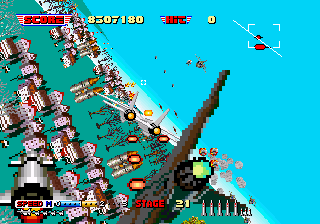 The Sharp X68000 was ported by Dempa, who had also developed the Genesis version. The scrolling is fairly smooth, although the number of sprites have been reduced, and the music is a close approximation of the arcade original.