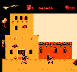 The controls and physics are reprehensible, and the first level alone is incredibly difficult to complete because it feels like absolutely nothing works. There is a level select built-in where you can see the whole game, which includes nearly all of the stages, except for (as with the other ports) the Genie’s lamp level and the Iago boss fight. Anyway, this one actually is worse than the legit NES release, and is poor even by pirated game standards.