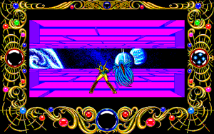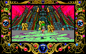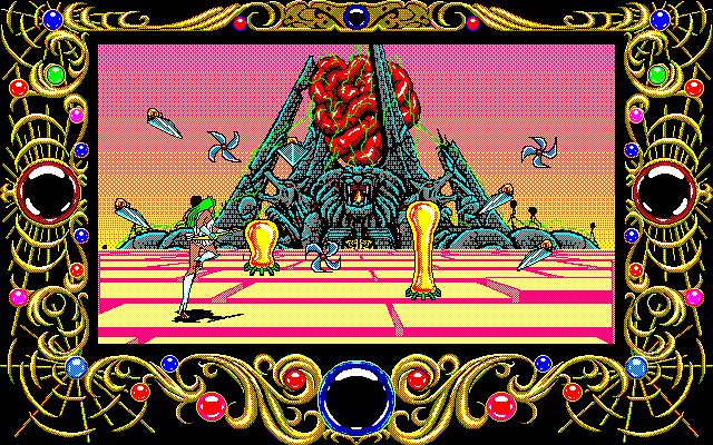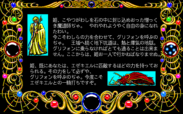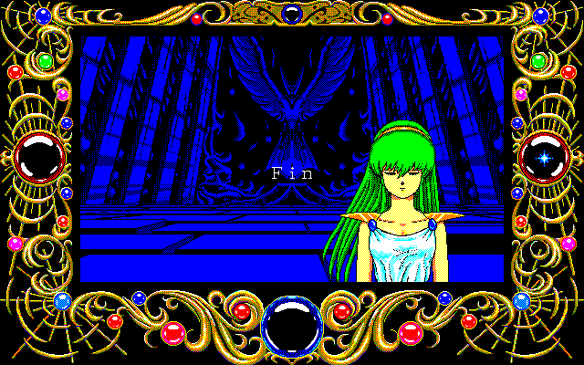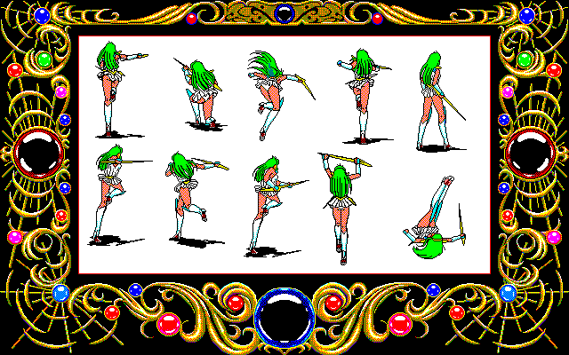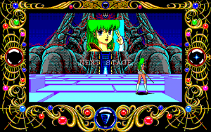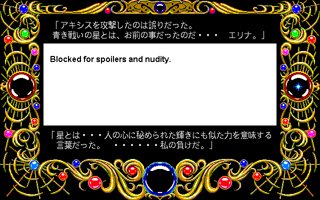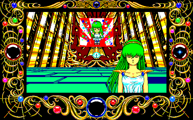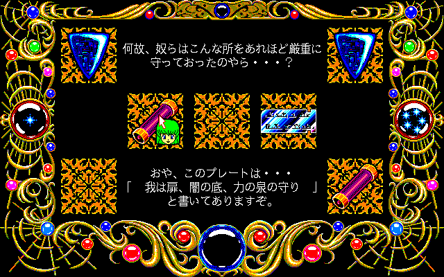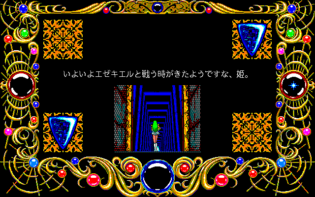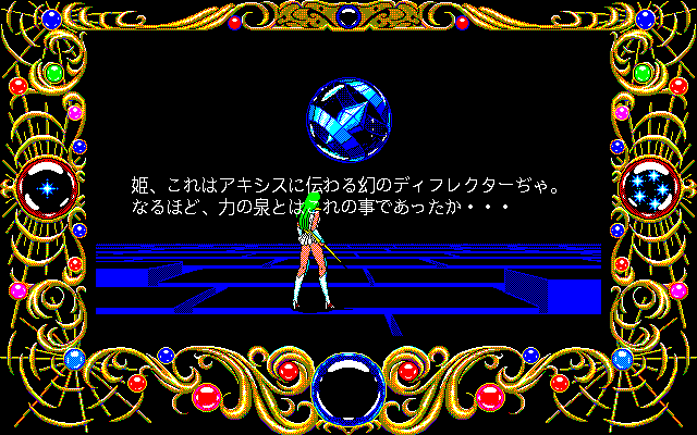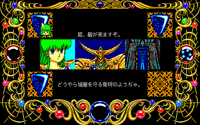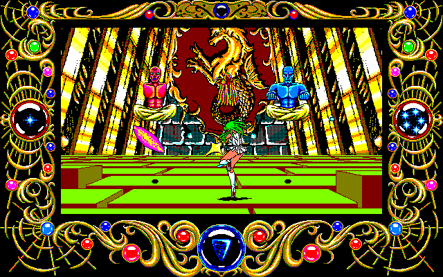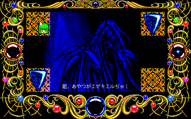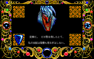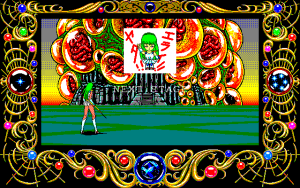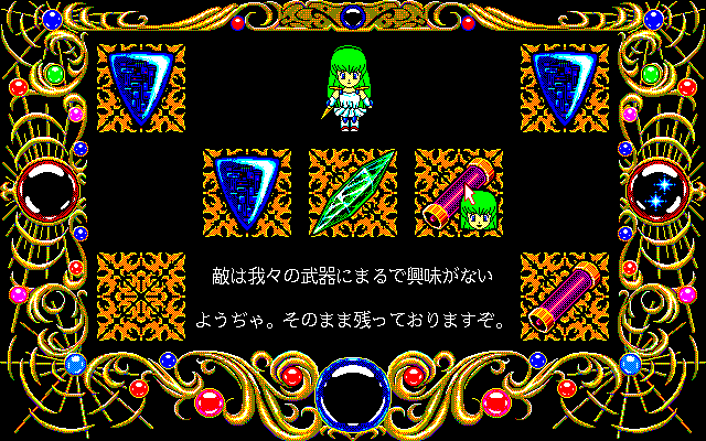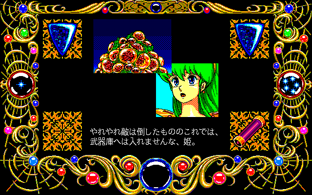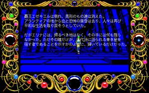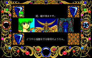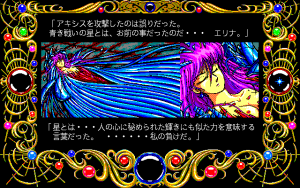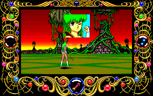 The levels themselves look pretty cool, featuring textured floors, huge sprites, lots of enemies on screen, and very little slowdown. The fast action, intense music, and loud sound effects bring a general arcade feel to Alantia which is not seen very often on the PC98; very impressive for 1988.