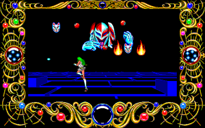 While Alantia has a terrible flaw of being unable to shoot correctly and has some very frustrating difficulty problems, the level and enemy designs are actually rather good, especially considering the technical limitations of the time. The first level has huge eye monsters that harass you all through the level and can’t be destroyed. The second level has a ghost that attack in patterns and can only be killed by shooting its orb that appears near the end. The bonus level consists entirely of running toward a three-headed clown demon that can only be defeated by reaching the end of the level. Later levels tend to have monstrous bosses that can take a while to kill and are some of the hardest parts of the game.